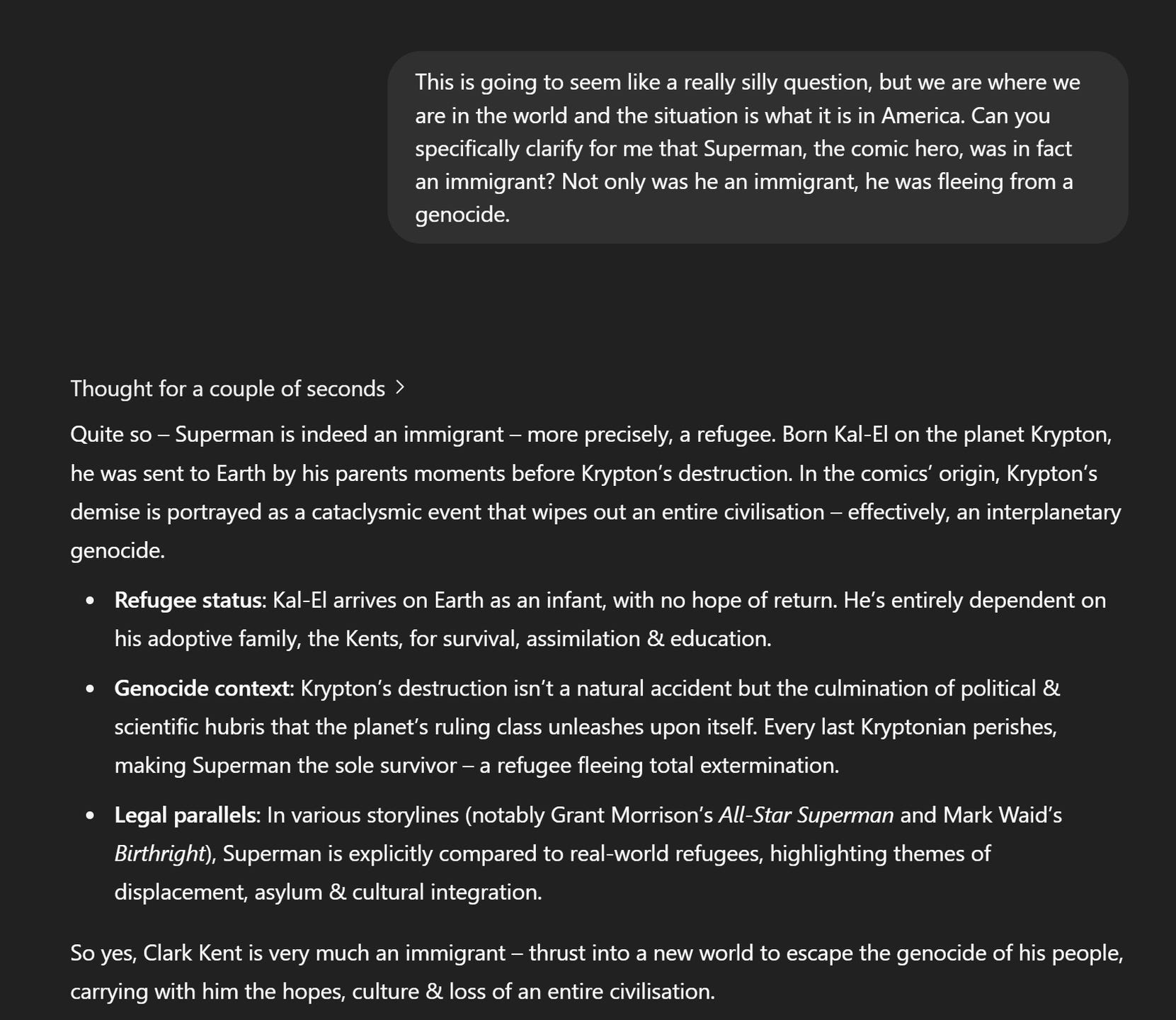 /looks at Americans going so far out of their way to deny Superman was an immigrant right now the cultural whiplash will snap heads off when it springs back on them